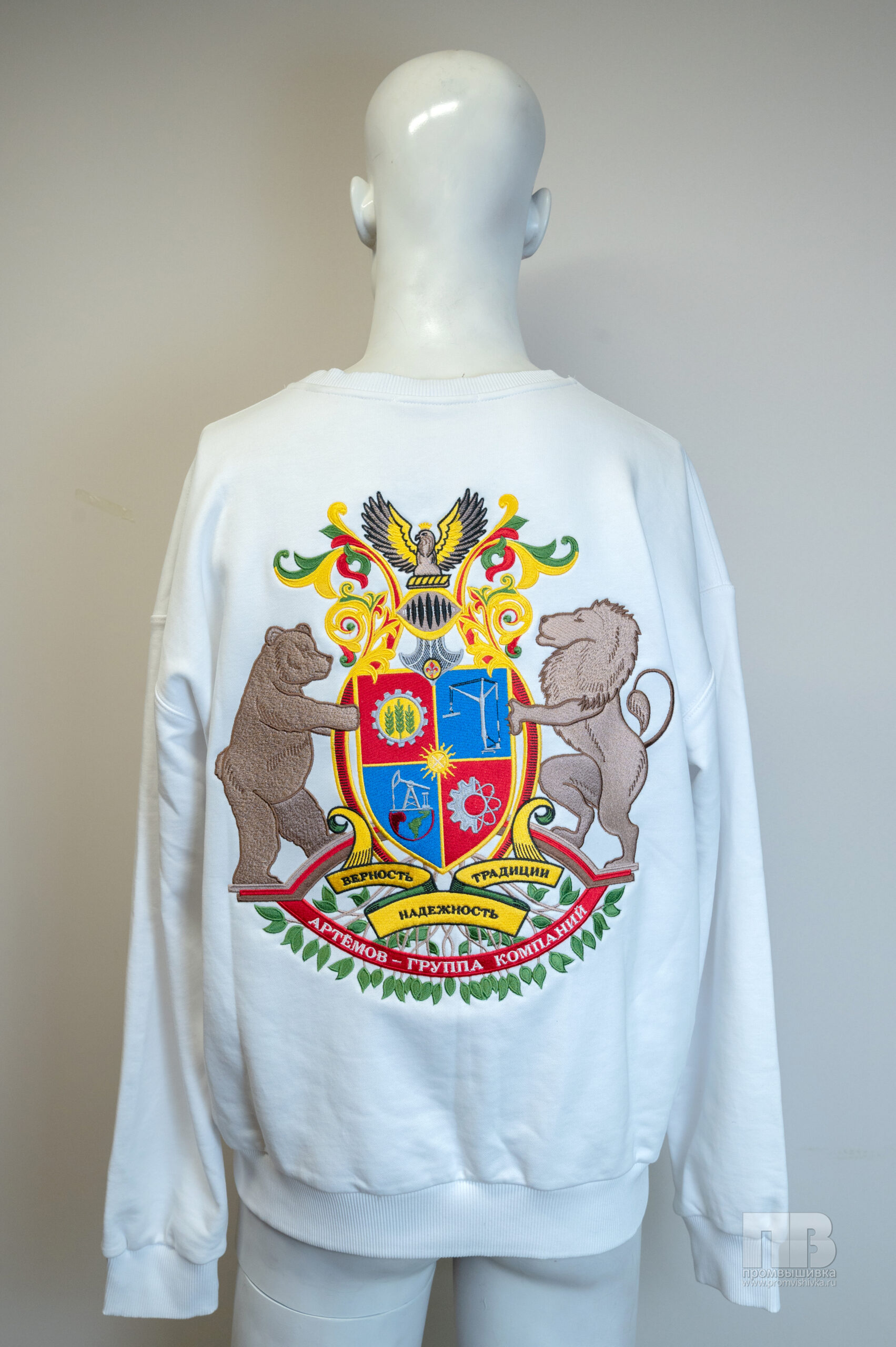Белая толстовка-свитшот с вышитым гербом «АРТЁМОВ-ГРУППА КОМПАНИЙ» — это не просто предмет корпоративного стиля, а …