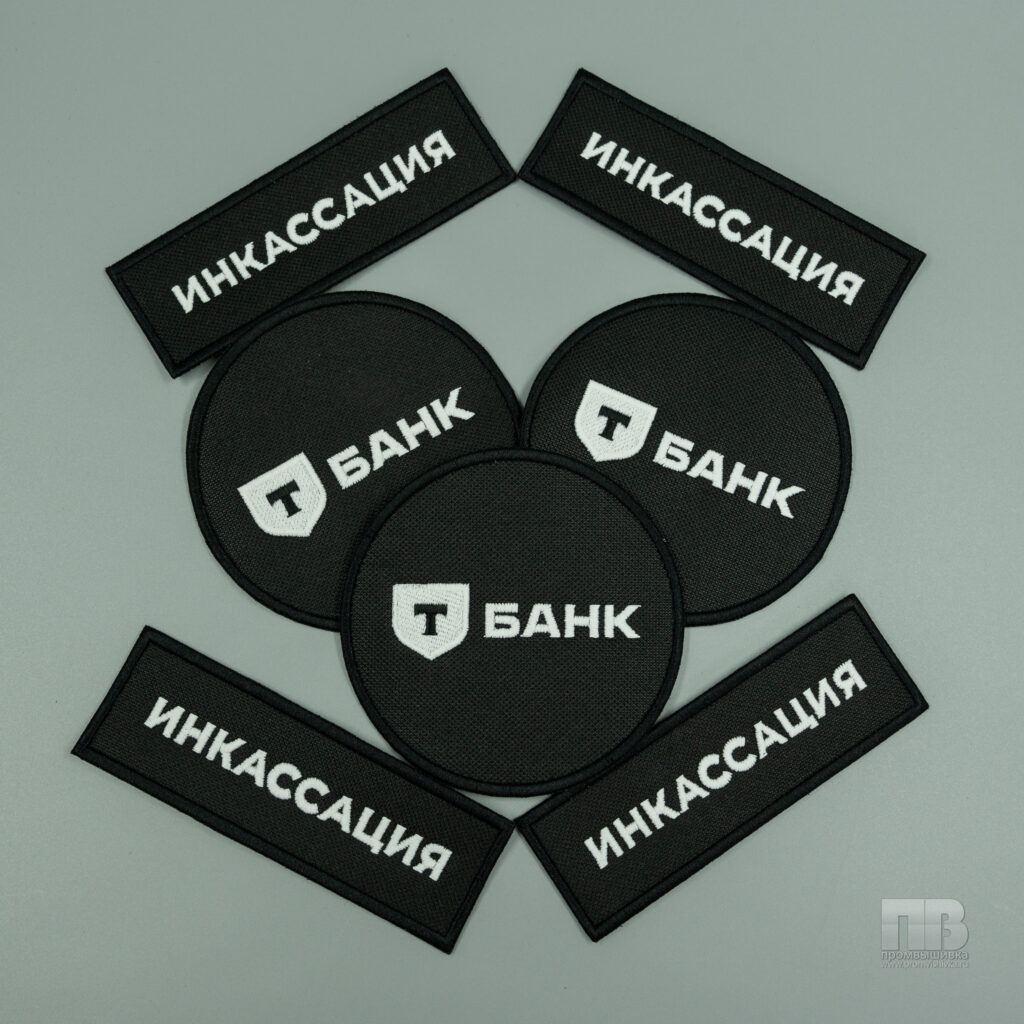 Для инкассаторской службы одного из крупнейших банков России — Т-Банка — мы создали лаконичные и узнаваемые нашивки. На круглых черных шевронах белыми нитями вышит логотип Т-Банк, а на прямоугольных — строгая надпись «ИНКАССАЦИЯ». Минималистичный дизайн в корпоративных цветах подчеркивает надежность и профессиональный подход, что особенно важно для сотрудников, чья работа связана с повышенной ответственностью.